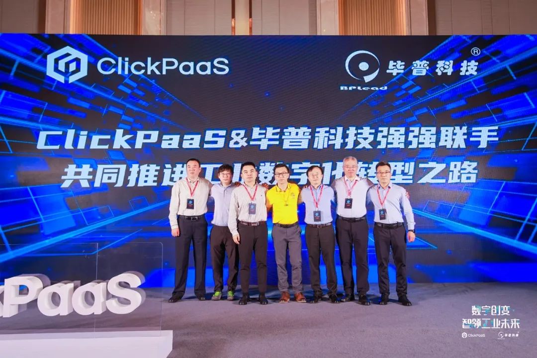 在万众瞩目下,开云在线平台创始人、CEO胡柏,联合创始人、CTO王復兴,CSO汤滨,以及毕普科技的创始人曾令卫,毕普科技联合创始人许有利、营销副总张晓峰上台共同开启了CP&BP的工业数字化未来。
